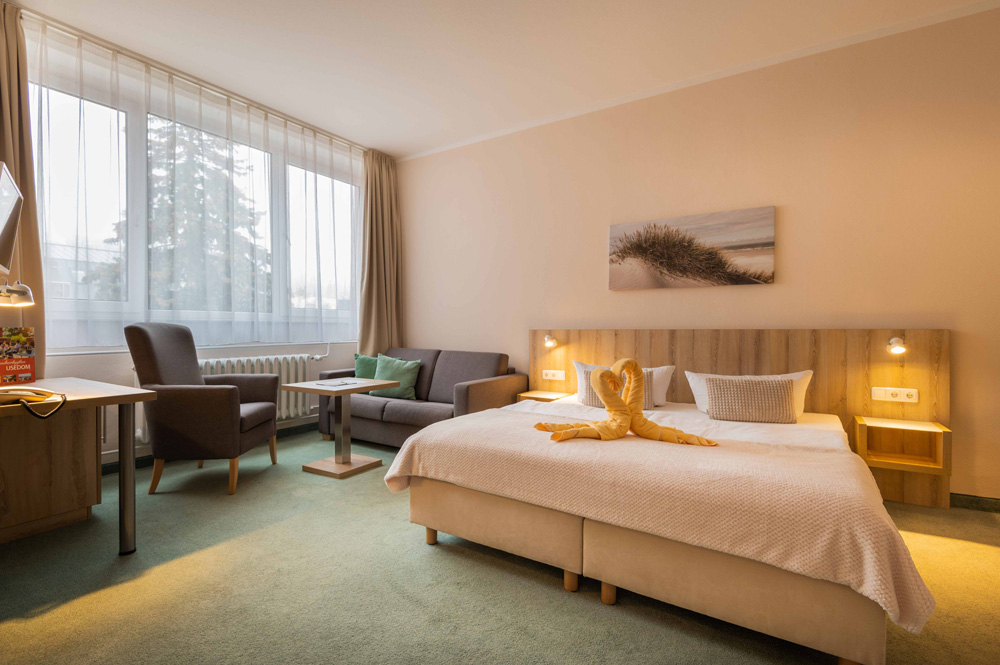 Die o.g. Preise beinhalten die Übernachtung im Komfortzimmer, ein reichhaltiges Frühstücksbuffet, W-Lan im Zimmer und in den öffentlichen Bereichen, die Nutzung von Sauna, Infrarotsauna & Whirlpool sowie einen Parkplatz oder den Shuttleservice vom Bahnhof Heringsdorf.